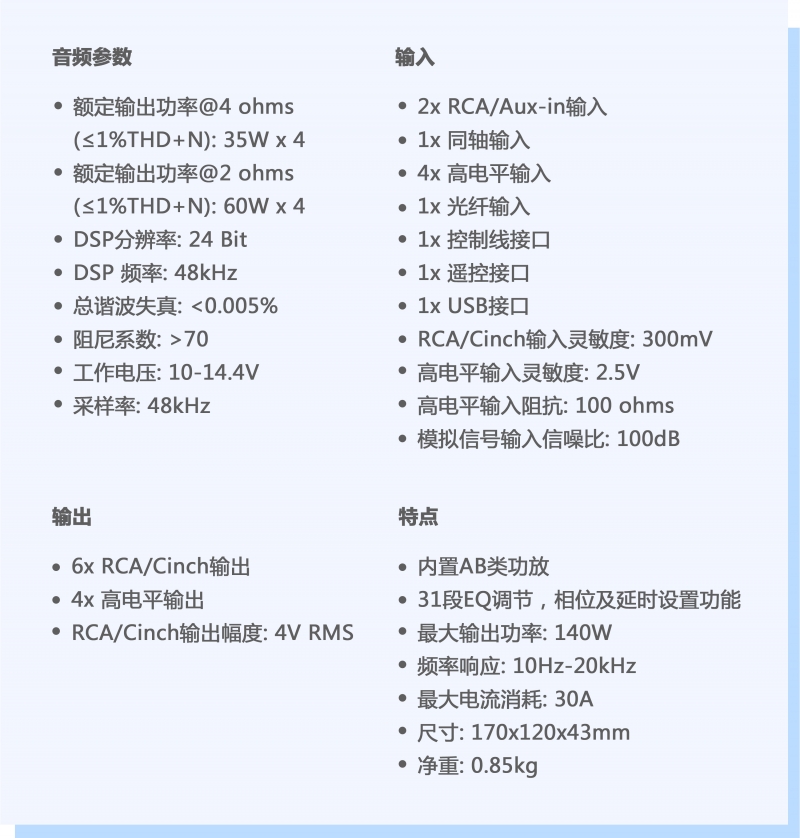 提升主機(jī)功率的同時(shí)可營造聲場定位,明顯提升音質(zhì)效果,最大限度散發(fā)出音樂的魅力,將車內(nèi)空間應(yīng)有的音響頻段發(fā)揮到淋漓盡致傳遞最真實(shí)的聲音。