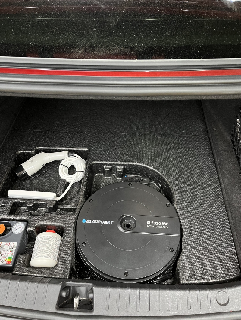 在做了各方面試聽評估后,車主欽點了藍寶這款剛剛上市不久的XLf 320 AW備胎低音炮和一套藍寶GTx 1662 C25喇叭來做為本次升級的產(chǎn)品。顧名思義,備胎炮明顯是裝在備胎上的,但也不僅限于備胎。因為比亞迪漢EV并沒有配備胎,所以安裝師傅在后尾箱做了個“挖坑”工藝處理,為備胎炮量身制定一個專用的隱蔽位置,妥妥的將備胎炮固定收藏在后備箱里面。