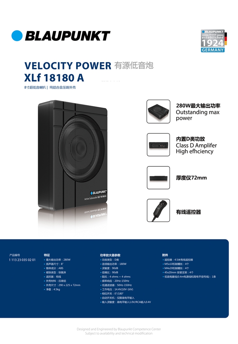 德國(藍(lán)寶BLAUPUNKT)有源低音炮 XLf 18180A